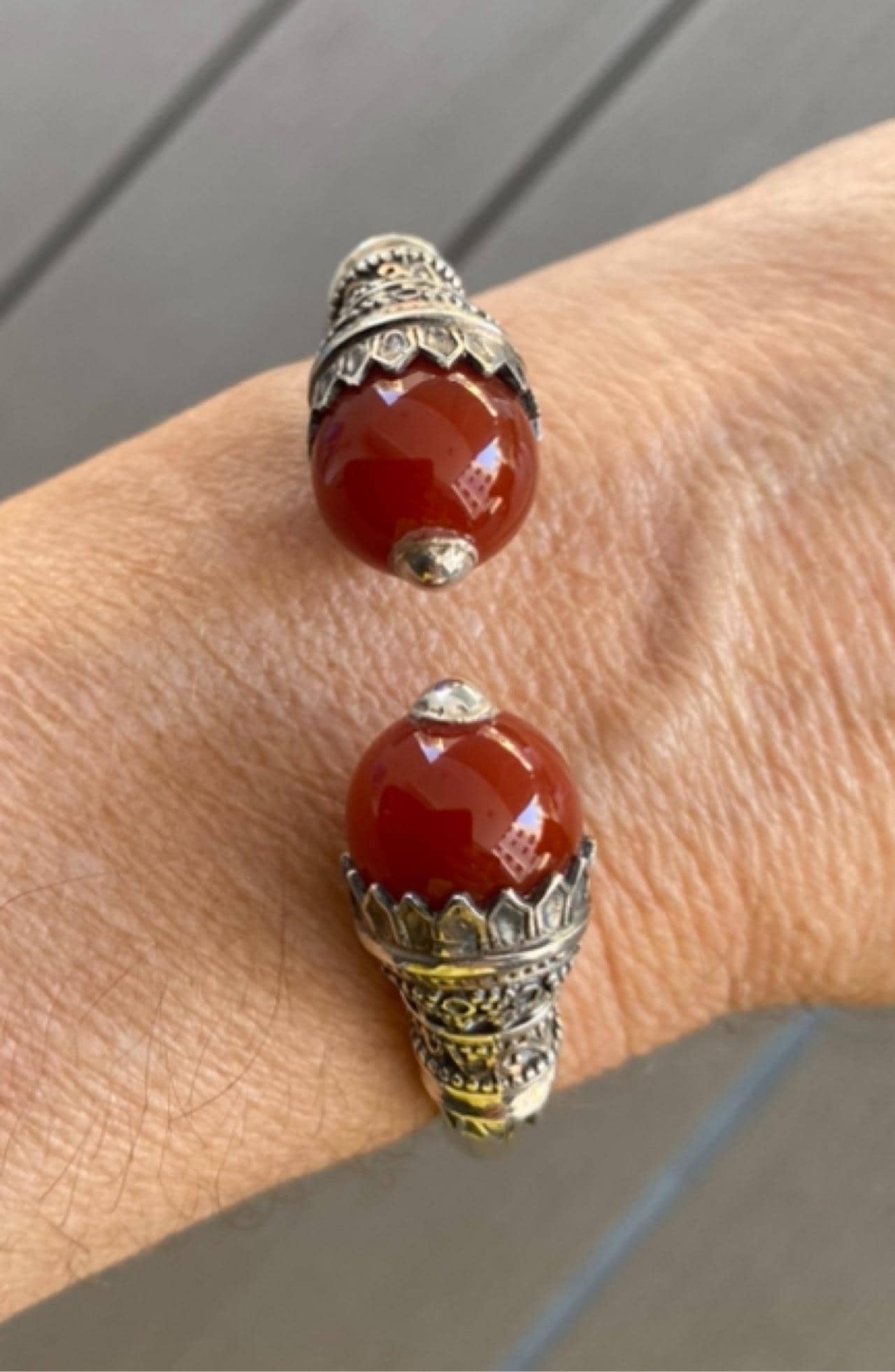 The cornelian cuff bracelet is delivered in a gift box.