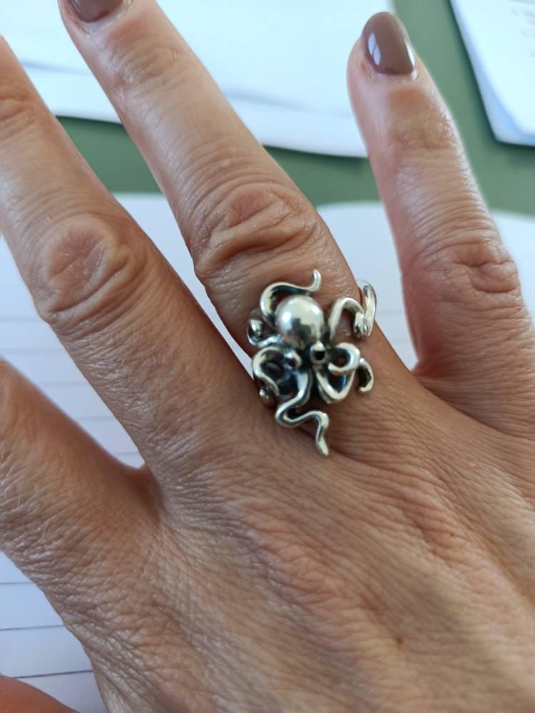Handcrafted with care, this ocean-inspired ring is perfect for those who love marine life jewelry, sea-creature rings, and statement silver rings. Its adjustable size makes it an easy gift choice for ocean lovers, beachgoers, and those drawn to unique handmade sea life jewelry.